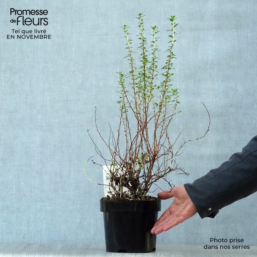 La Escalonia Donard Seedling se planta preferentemente en primavera, o en otoño en climas muy suaves. Requiere un suelo bien drenado, fresco, ligeramente ácido, neutro o incluso calcáreo, en una ubicación protegida y cálida. Florece más abundantemente al sol, pero tolera bien las exposiciones más sombreadas. Una vez bien establecido, no necesita riego en verano, incluso en climas secos. Soporta los rocíos marinos pero no los vientos fríos invernales. Aplica eventualmente un fertilizante para rosales en primavera, si tu suelo es muy pobre. Poda para equilibrar la silueta en febrero y septiembre. Teme los suelos muy pesados y la humedad estancada, especialmente en invierno. Si el suelo es realmente demasiado pesado y calcáreo, puede verse afectado por la clorosis; en ese caso, aplica cada año, en primavera, una dosis de quelato de hierro. Realiza una poda a un tercio de su altura los primeros años durante su establecimiento para que el arbusto adquiera un porte denso y compacto. También puedes podarlo en forma de bola. En regiones frías, plántalo en una ubicación protegida de los vientos dominantes, al sur contra un muro o al oeste en el fondo de un macizo o en un seto, y acolcha el pie en invierno. Si tu escalonia ha sufrido heladas en invierno, es probable que rebrote desde la base en primavera.