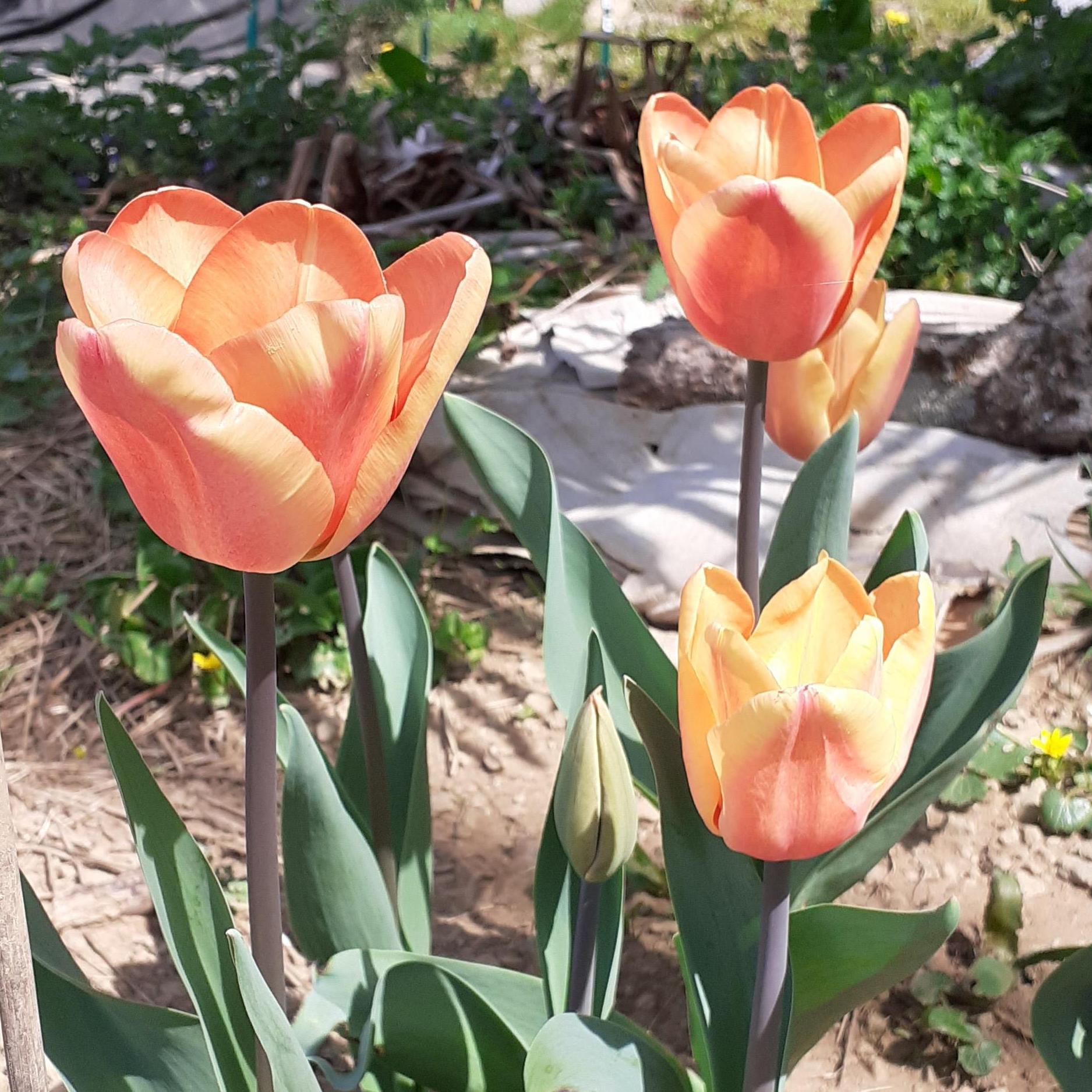 Riqueza de colores, flores sólidas y resistentes, utilizables tanto en macizos como para adornar tus ramos, las tulipas triunfo son adecuadas para todos los usos. Inigualables para llevar el color de la primavera en macetas o en jardines soleados, no olvides considerar la altura y el período de floración al diseñar tus macizos, ya que estos parámetros varían significativamente de un cultivar a otro. Es sabio plantar algunos bulbos más para cortar, ya que hacen flores cortadas espectaculares que duran mucho tiempo en un jarrón. 'Apricot Foxx' encaja perfectamente en grandes macizos, combinada con otras tulipas blancas o amarillas, pero también junto a flores azules. Los nomeolvides, las jacintos de bosque o los muscaris resaltarán sus tonos cálidos. Las tulipas también son flores muy bonitas para cortar.
