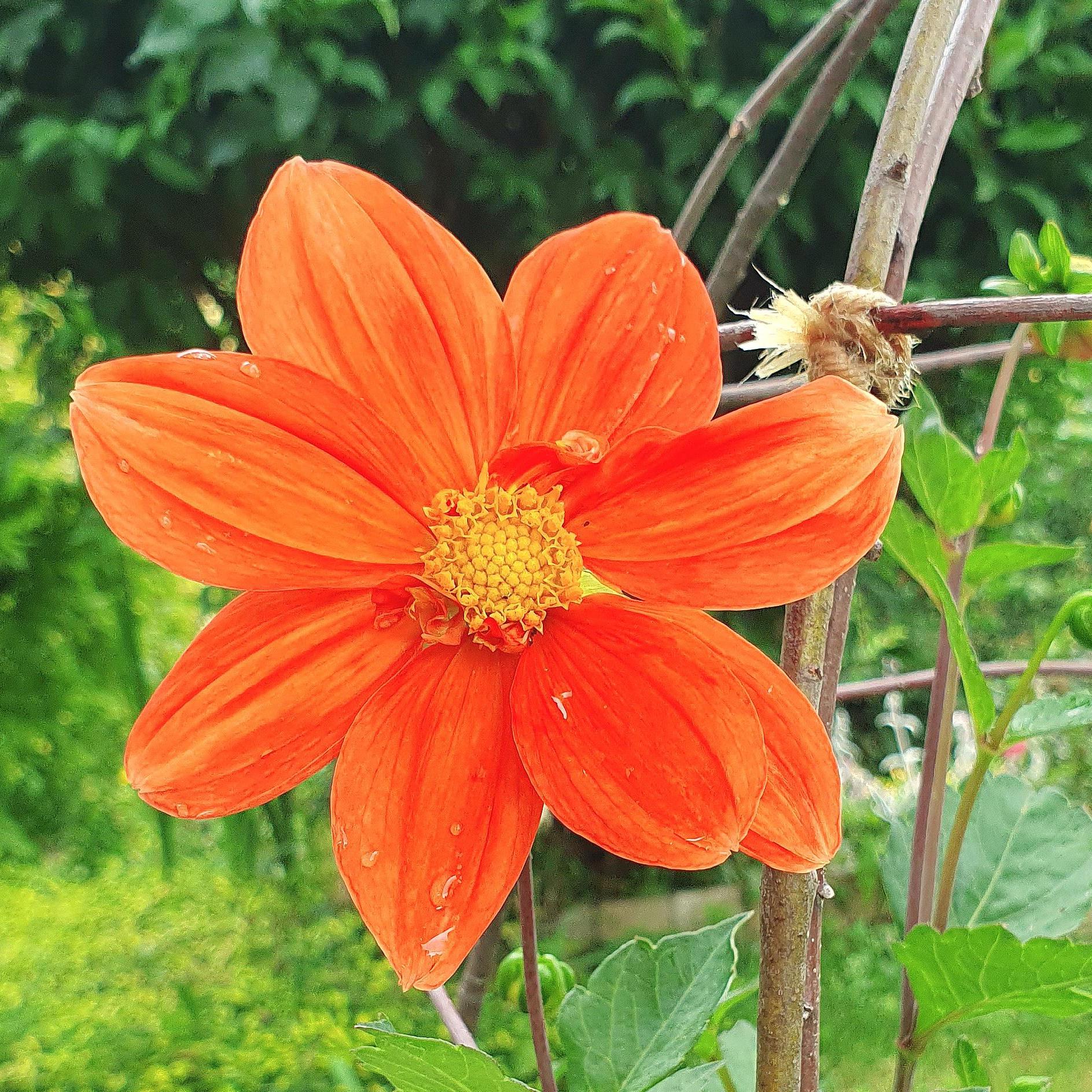 Con sus formas simples y sus hermosos follajes bronce cobrizos, los dalias paisajísticos se combinan armoniosamente con la ligereza de las gramíneas y otras plantas vaporosas