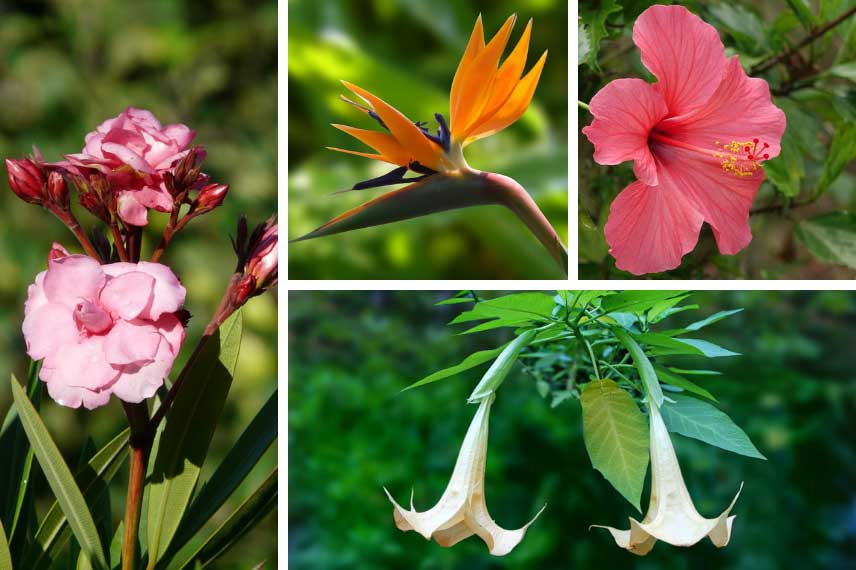Oleandro, Ave del Paraíso, Hibisco y Brugmansia