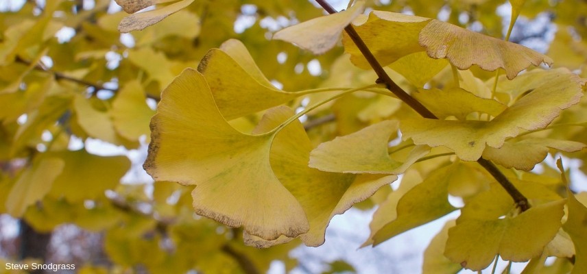 Ya no existe en estado natural y debe su supervivencia, sin duda, a su plantación a la entrada de los templos chinos. Sus hojas en abanico de color verde claro adquieren una coloración amarilla brillante que realmente evocan monedas de oro que relucen al viento del otoño. Cabe señalar que las plantas femeninas del Ginkgo, cuyo porte es más extendido, producen frutos amarillos bastante nauseabundos, pero solo a los 20 años. A menudo se ofrecen clones machos y, en particular, el cultivar Blagon, que posee un porte fastigiado limitado a 2 m de diámetro.