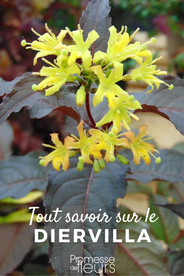 La altura del arbusto varía de 1,30 m para el Diervilla lonicera a 2 m para el Diervilla rivularis, para un porte de 1,50 m a 2,50 m. Los racimos de pequeñas flores terminales regalan a los insectos libadores y difunden tonos frescos amarillo verdoso y luego amarillo limón, que iluminan el sotobosque en mayo-junio para Diervilla lonicera y en julio-agosto para las otras especies. Se abren en las ramas del año anterior o en los brotes del año según su fecha de floración. Evolucionan hacia el blanco crema al marchitarse y luego ceden el paso a pequeñas bayas rojo oscuro.