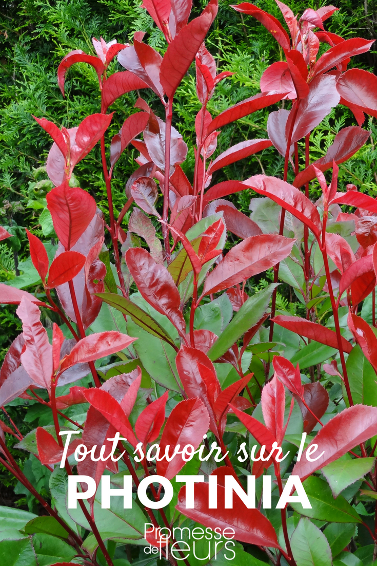El Photinia es un arbusto principalmente utilizado como planta de seto debido a la densidad de sus grandes hojas lustrosas que nacen rojas o bronce en la primavera y desde el rebrote que sigue a cada poda. También constituye, además, un bonito pequeño árbol de ornamentación con follaje brillante y porte redondeado muy elegante. Basta quitar las ramas bajas y despejar la base de las partes leñosas para realzar su ramaje. Se adapta igual de bien a la conducción en topiario de bola o columna, y se cultiva muy bien en maceta. Además, posee otras ventajas. Las hojas se vuelven escarlatas en otoño, mientras que los racimos esponjosos de flores blancas fragantes y melíferas engalanan el ramaje en mayo-junio si la poda está bien ajustada. Su crecimiento es muy rápido, del orden de 50 a 60 cm por año a partir del segundo año de plantación. Asimismo toleran entre 1 y 3 podas al año, lo que permite disfrutar de brotes coloridos con más frecuencia.