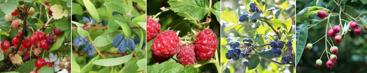 Una idea de asociación en seto frutícola: grosellero, camérisier (o Arándano de Siberia), frambuesa, arándano y amelanchier
