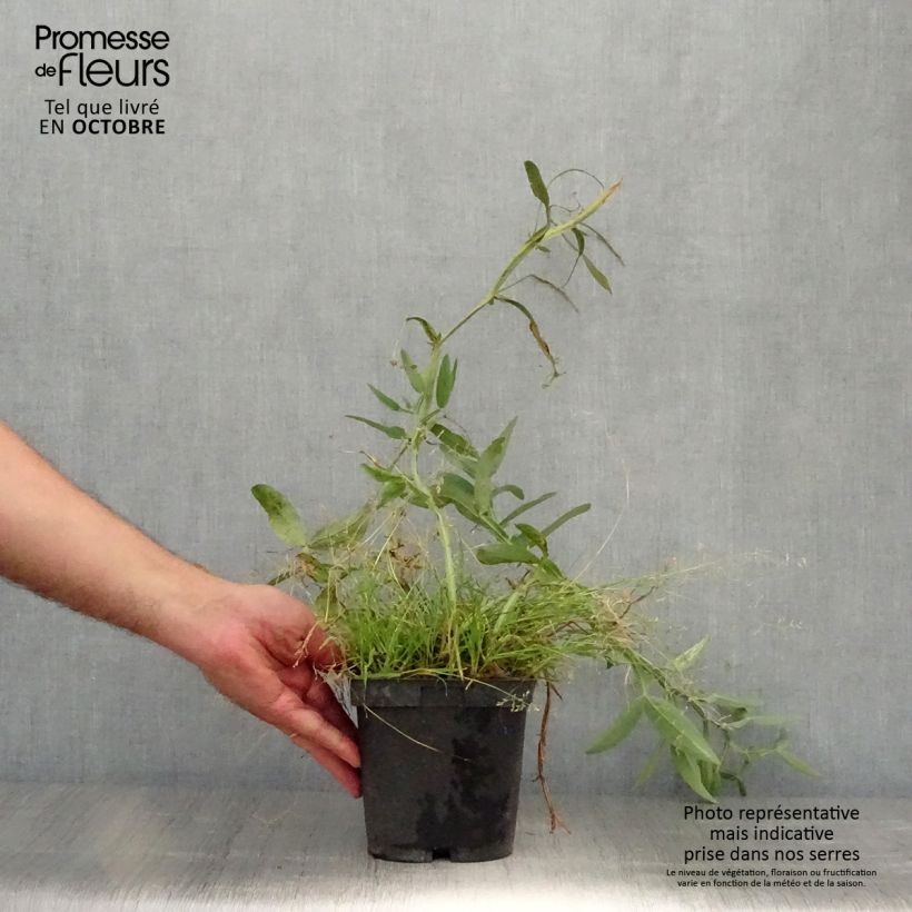 Esta encantadora planta tiene más de un atractivo: follaje azulado crujiente, pequeños racimos de capullos muy enrollados, y finalmente la finura de sus flores rosadas. Se adapta bien a lugares cálidos y soleados así como a terrenos bien drenados e incluso pedregosos. Es una planta perfecta para vestir rápidamente un jardín nuevo, una zona algo salvaje, las ramas un poco tristes de coníferas o arbustos de floración primaveral ya sin flores. Fácil de cultivar, las grandes semillas del Lathyrus latifolius son fáciles de manipular y podrán ser sembradas fácilmente por los niños. Esta Arveja de primavera es ideal para decorar una espaldera, una malla e incluso una maceta en la terraza durante todo el verano. Este guisante es un vagabundo aéreo con un pie formidable. Si se instala en el jardín, se multiplica y se expande a su antojo, asaltando a otras viváceas, sin ahogarlas bajo su peso tan ligero. En ramo, luce hermoso varios días, los capullos que se abren en blanco teñido de verde, son muy refinados y combinan bien con algunas espigas de Buddleia que aportan el toque perfumado que les falta.